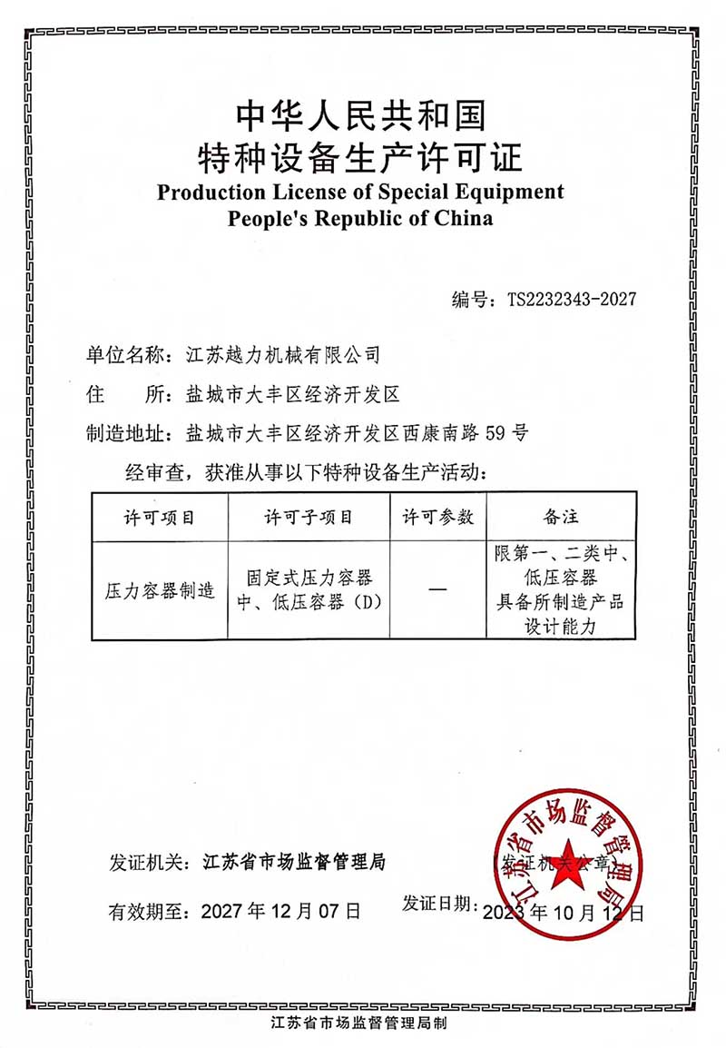壓力容器許可證書(shū)